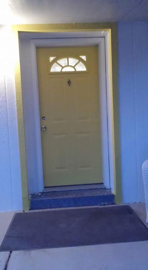 My sweetie was so tired! He does quite a bit of yard work, but painting houses has never been his thing (although he did power-wash a bunch of my wood today so I guess my house is getting a bit of a facelift too). He doesn't love ladders or working over his head.His brother helped him with all the painting and masking, although my sweetie spent an extra day power-washing everything first. I couldn't convince him to stay the night so he drove back and forth 2 hours each way for 4 days. But as you can see, it was totally worth it and his mom is so pleased. I just wish he would have taken a pic of her standing in front of her bright yellow door. (My SIL just sent me these last two pics. Not quite what I was hoping for, but close!)