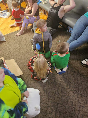 Now that Christmas is over, I want to tell you about the fun we had last Sunday at my sweetie's very own and first Reindeer Games. He planned and prepped for weeks and finally came up with about 10 games, some for kids, some for grownups, and some for both. I was in charge of Jump Your Own Man checkers, a game for both young and old. We assigned a bunch of the grownups to each be in charge of collecting scores and running games so we could all play as well. We had Christmas Boggle. Muppets Christmas Yahtzee, stock car racing (adults only of course), candy bomber, coloring contest and a bunch more. Beauty had never played Yahtzee before and she cleaned up with a score of 520!!